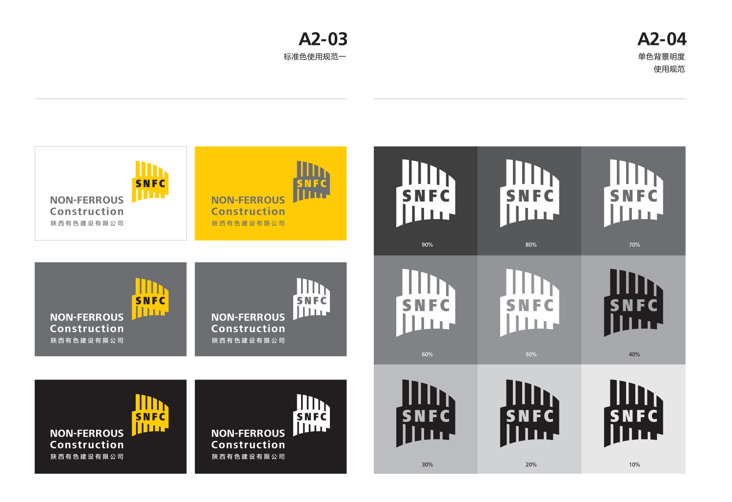 標(biāo)識(shí)釋義: 陜西有色建設(shè)有限公司成立于2004年,是一家綜合性的建筑企業(yè),先后承接了一批在全國建筑市場有影響的工程項(xiàng)目,并將大型工礦建設(shè)作為企業(yè)的發(fā)展目標(biāo),業(yè)已成為陜西建筑市場中的強(qiáng)勁生力軍。 品牌標(biāo)識(shí)設(shè)計(jì)正是從企業(yè)實(shí)際狀況和遠(yuǎn)景規(guī)劃中提煉而來,通過抽象的圖形和圖文結(jié)合的表現(xiàn)手法,體現(xiàn)了企業(yè)國際化的戰(zhàn)略眼光。 1、標(biāo)識(shí)以圖文結(jié)合的方式突顯企業(yè)英文簡稱 “SNFC”; 2、標(biāo)識(shí)形似拔地而起的高大建筑群落,傳達(dá)企業(yè)特色的同時(shí)充分體現(xiàn)了企業(yè)強(qiáng)勁的競爭力; 3、標(biāo)識(shí)形似飄揚(yáng)的旗幟,寓意企業(yè)力求成為建筑行業(yè)中的一面旗幟和楷模,以及為行業(yè)樹立新標(biāo)桿的勃勃雄心; 4、標(biāo)識(shí)又似大型建筑機(jī)械施工中留下的痕跡,體現(xiàn)了企業(yè)雄厚的技術(shù)實(shí)力,也表達(dá)了遠(yuǎn)期大型工礦建設(shè)的發(fā)展規(guī)劃; 5、標(biāo)識(shí)采用明快的黃色,與傳統(tǒng)建筑企業(yè)相區(qū)別,同時(shí)樹立起一個(gè)現(xiàn)代、高效、獨(dú)特的品牌形象,便于大眾的識(shí)別和記憶。 | 03 企業(yè)理念 塑造品牌 客戶至上 竭誠服務(wù) | 04企業(yè)愿景 行業(yè)領(lǐng)先 國內(nèi)一流 客戶首選 |
